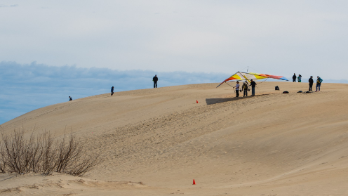 People stomping on the dunes in the Outer Banks have interrupted natural processes and displaced the once 140 foot tall dune into three 60-80 foot dunes. Dunes provide several ecosystem services, supporting and regulating. Dunes provide habitats for a multitude of species as a supporting service, and absorb energy of storms as a regulating service. Due to the flattening of the dunes, many species are displaced. Also, the dunes being flatter means they cannot absorb as much storm impact. Creating restoration areas for the dunes and creating specific trails to mitigate the stomping on the dunes can help.